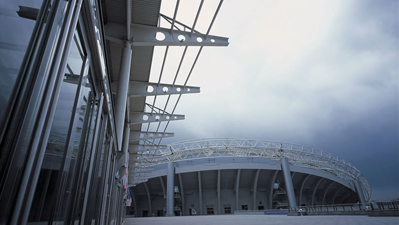 哈爾濱國際會展體育中心容量巨大、功能完善。具備建筑面積51000平方米的比賽用場地,面積為3525平方米的體育館,可容納1.1萬名觀眾,這里可進行冰球、籃球、排球、羽毛球、體操、手球等多種項目的比賽及大型文藝藝術(shù)演出。屋面使用了寶鋼熱鍍鋅氟碳彩涂板。