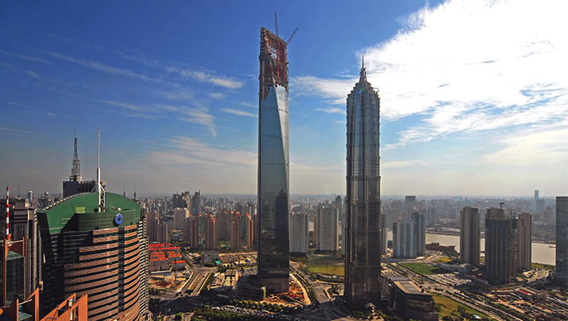 上海環球金融中心位于上海陸家嘴,2008年8月竣工。是中國目前第二、世界第三高樓,樓高492米,地上101層。該工程外墻幕墻(玻璃內板)使用了