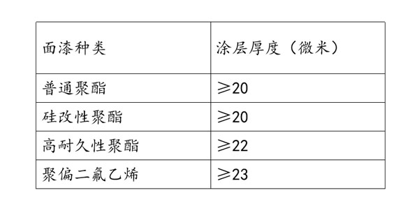 ③配合耐久性高的涂層,寶鋼對(duì)該類彩涂鋼板的最低鍍層重量也進(jìn)行了限制,例如氟碳產(chǎn)品熱鍍鋅鍍層重量不小于110g/m2,鍍鋁鋅鍍層量不小于75/75g/m2