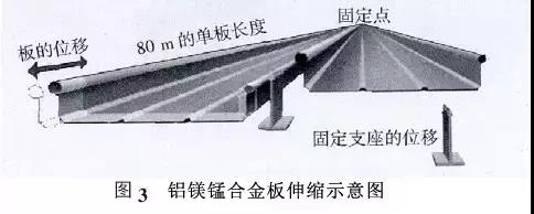 屋面板基材通常采用國(guó)際牌號(hào)AA3004 的鋁鎂錳合金壓型制作,合金狀態(tài)為H36/H46。其屈服強(qiáng)度≥190 MPa,抗拉強(qiáng)度在240~285 MPa,伸長(zhǎng)率≥3%。收邊板基材采用國(guó)際牌號(hào)AA3004 的鋁鎂錳合金壓型制作,合金狀態(tài)為H34/H44,其屈服強(qiáng)度170MPa ,抗拉強(qiáng)度在220~265 MPa ,伸長(zhǎng)率≥3%。